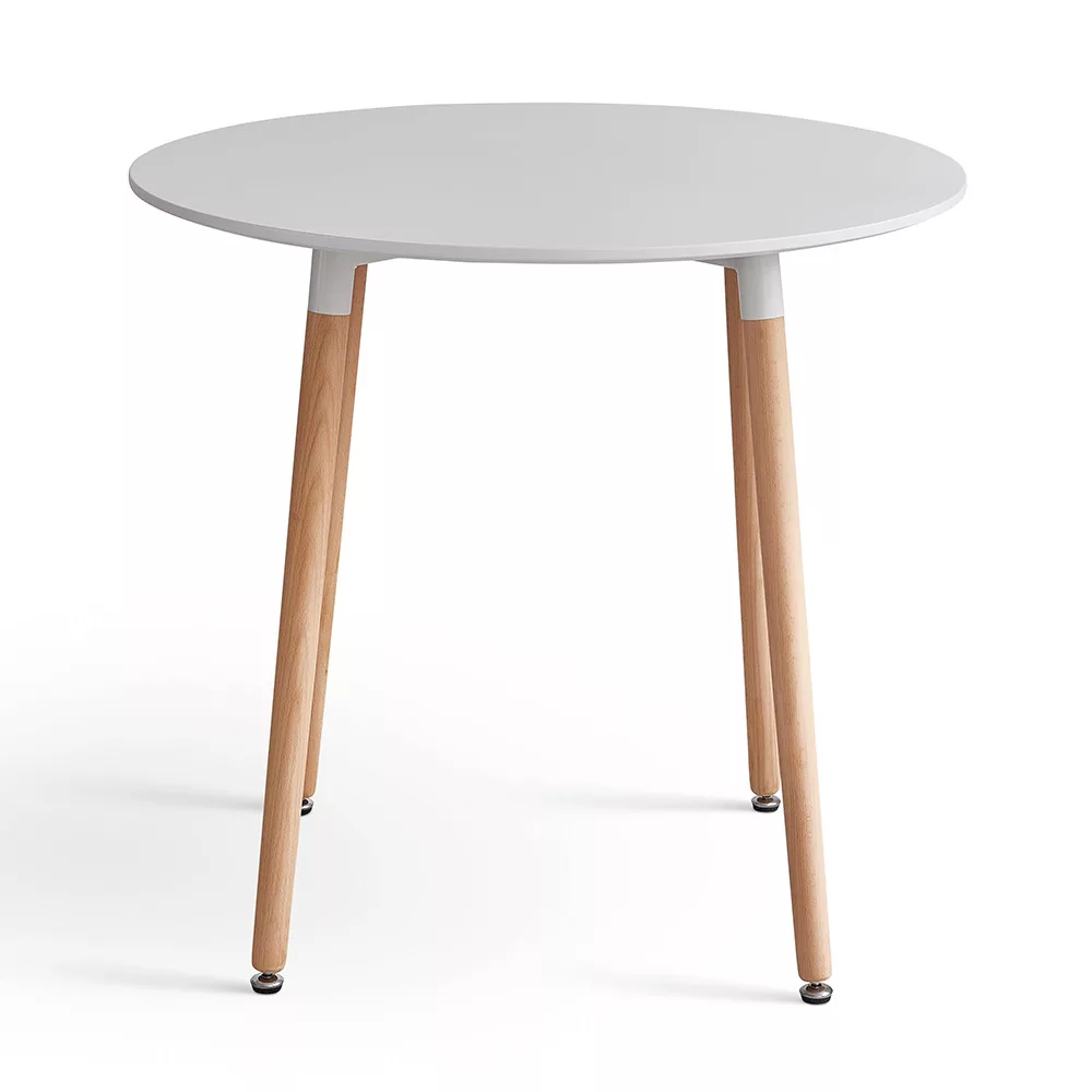 Étkezőasztal, fehér/bükk, átmérő 80 cm, ELCAN NEW