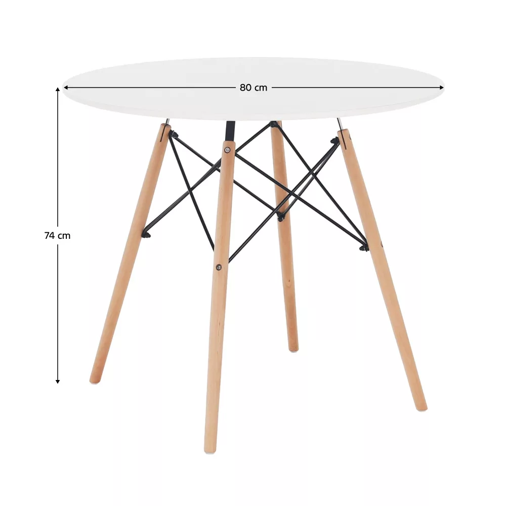Étkezőasztal, fehér/bükk, átmérő 80 cm, GAMIN 2 NEW 80