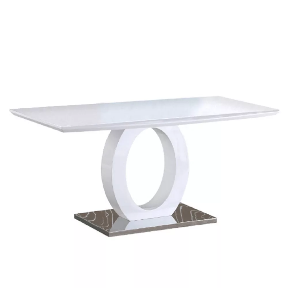Étkezőasztal, fehér magas fény/acél, 150x80 cm, ZARNI