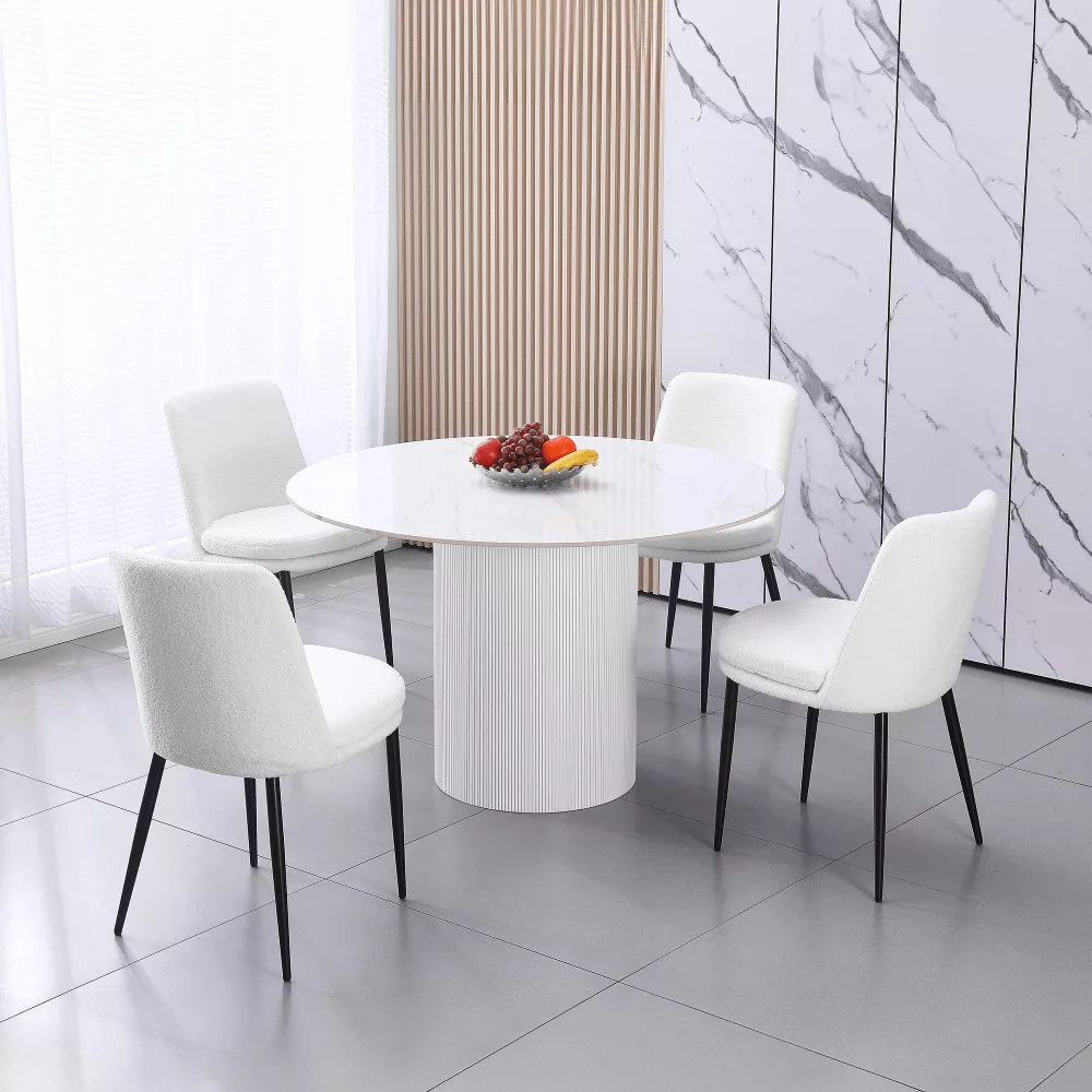 Étkezőasztal, fehér márvány/MDF, átmérő 120 cm, MAHIR TYP 1