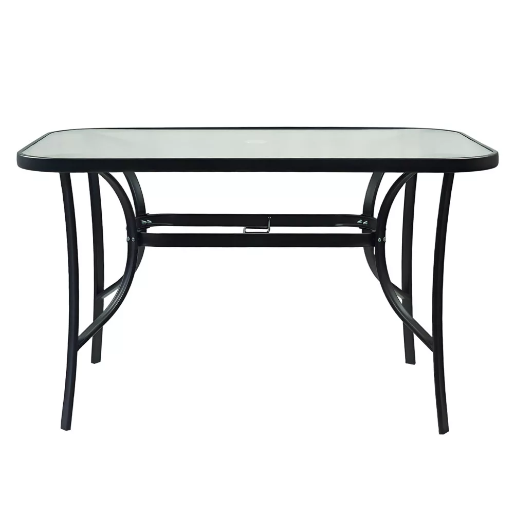 Étkezőasztal, fekete acél/edzett üveg, DEMAT NEW
