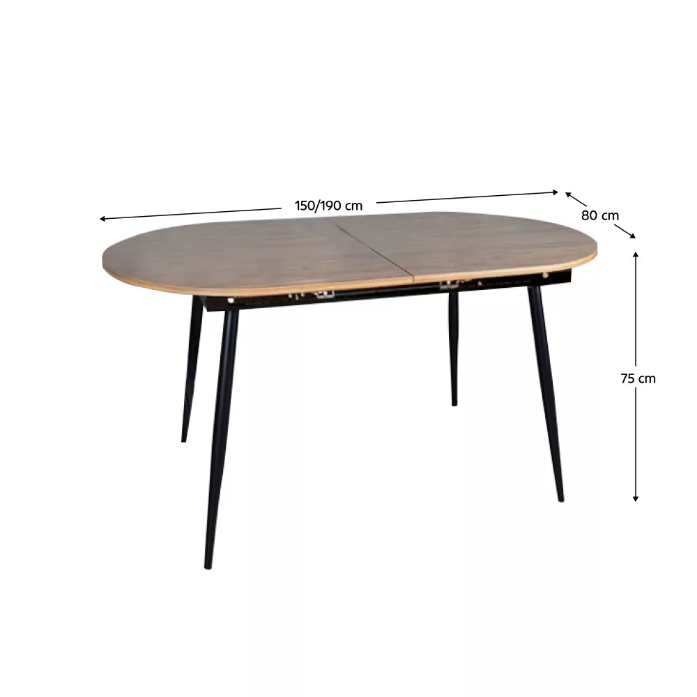 Étkezőasztal, széthúzható, tölgy/fekete 150-190x75 cm, TAMERON