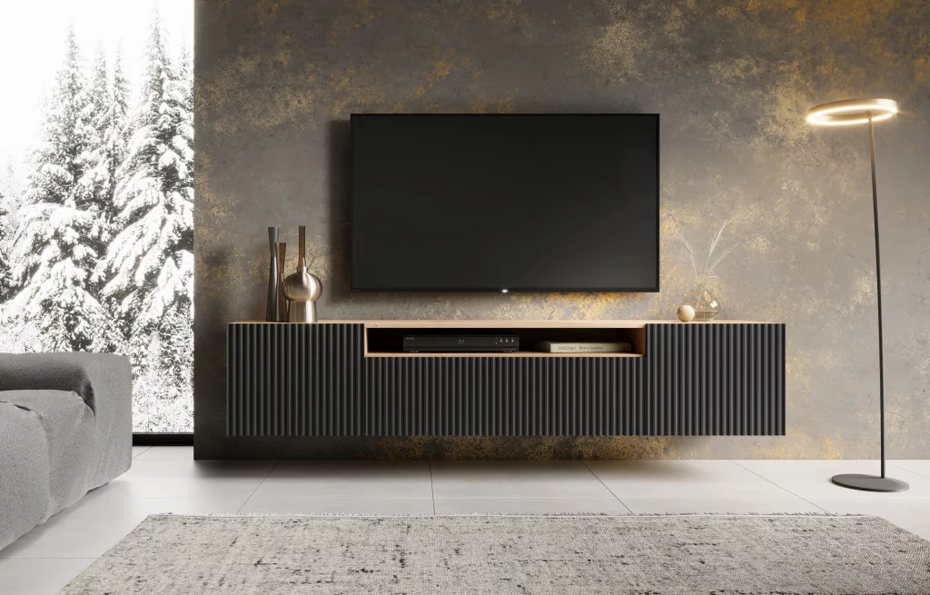 FALI NOEMI TV szekrény, Fekete, Artisan