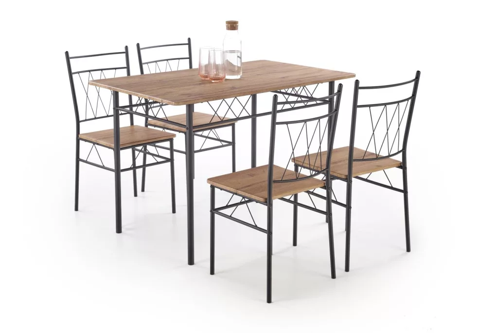 FAUST 3 szett, étkezőasztal + 4 szék, téglalap alakú, szín: natúr tölgy/fekete