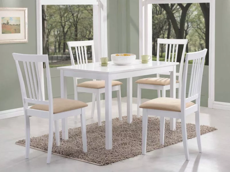 Fehér étkezőasztal, MDF asztallappal, fa kerettel.