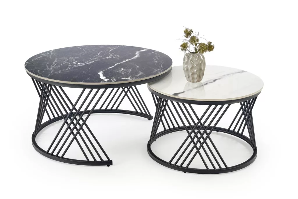 FLAMINGO két darabos dohányzóasztal szett, szín: fekete márvány/fehér márvány/fekete