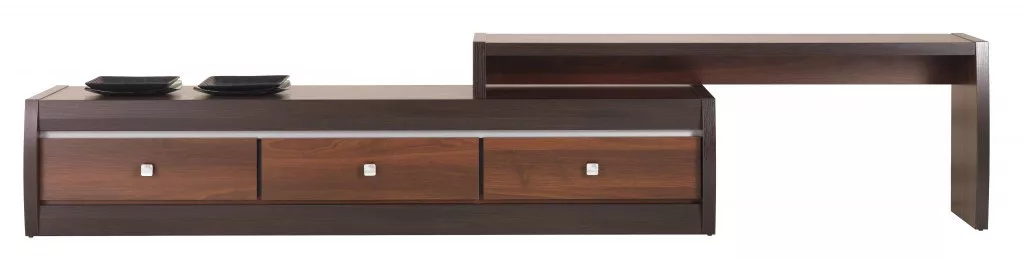 A FORREST termékcsalád stílusos RTV polca, mely a sötét dió markáns színének, és a bútor praktikus kialakításának köszönhetően, bármelyik nappaliban megállja a helyét.