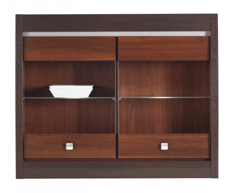 A FORREST termékcsalád stílusos vitrines szekrénye, mely a sötét dió markáns színének, és a bútor praktikus kialakításának köszönhetően, bármelyik szobában/étkezőben megállja a helyét.