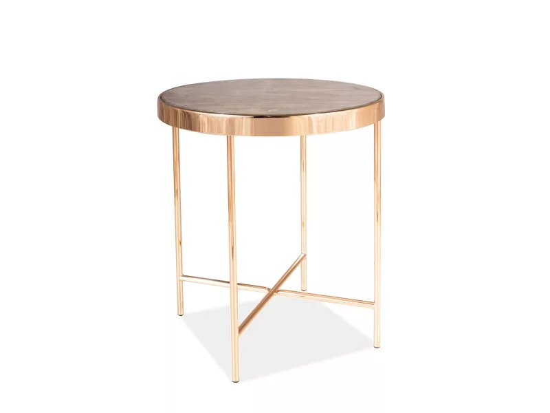 Fortuna dohányzóasztal festett arany fém lábakkal, márványozott mintás edzett üveg asztalappal.