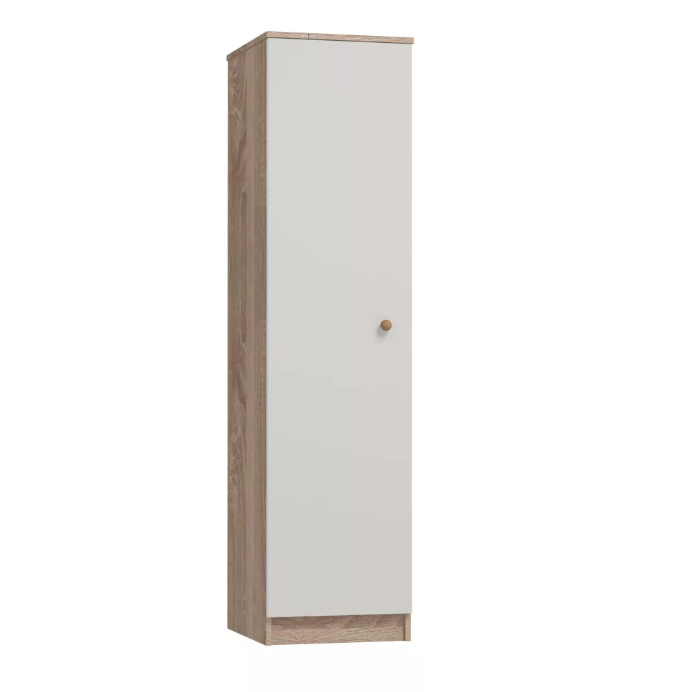 Keskeny állószekrény, két akasztóval és egy kalaptartó polccal.