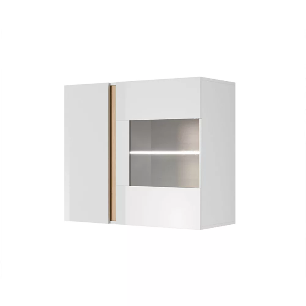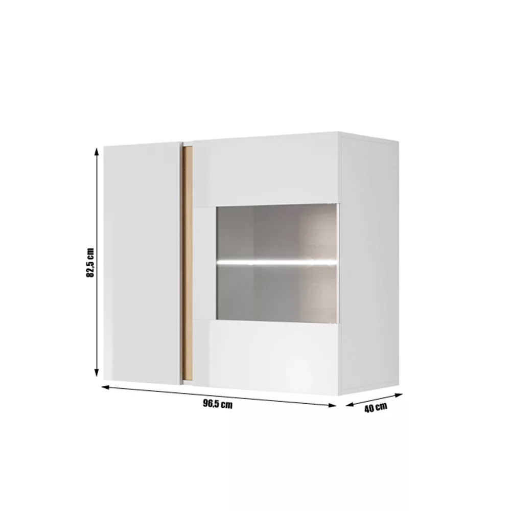 Fali vitrines szekrény 96, fehér/tölgy grandson/magasfényű fehér, CITY