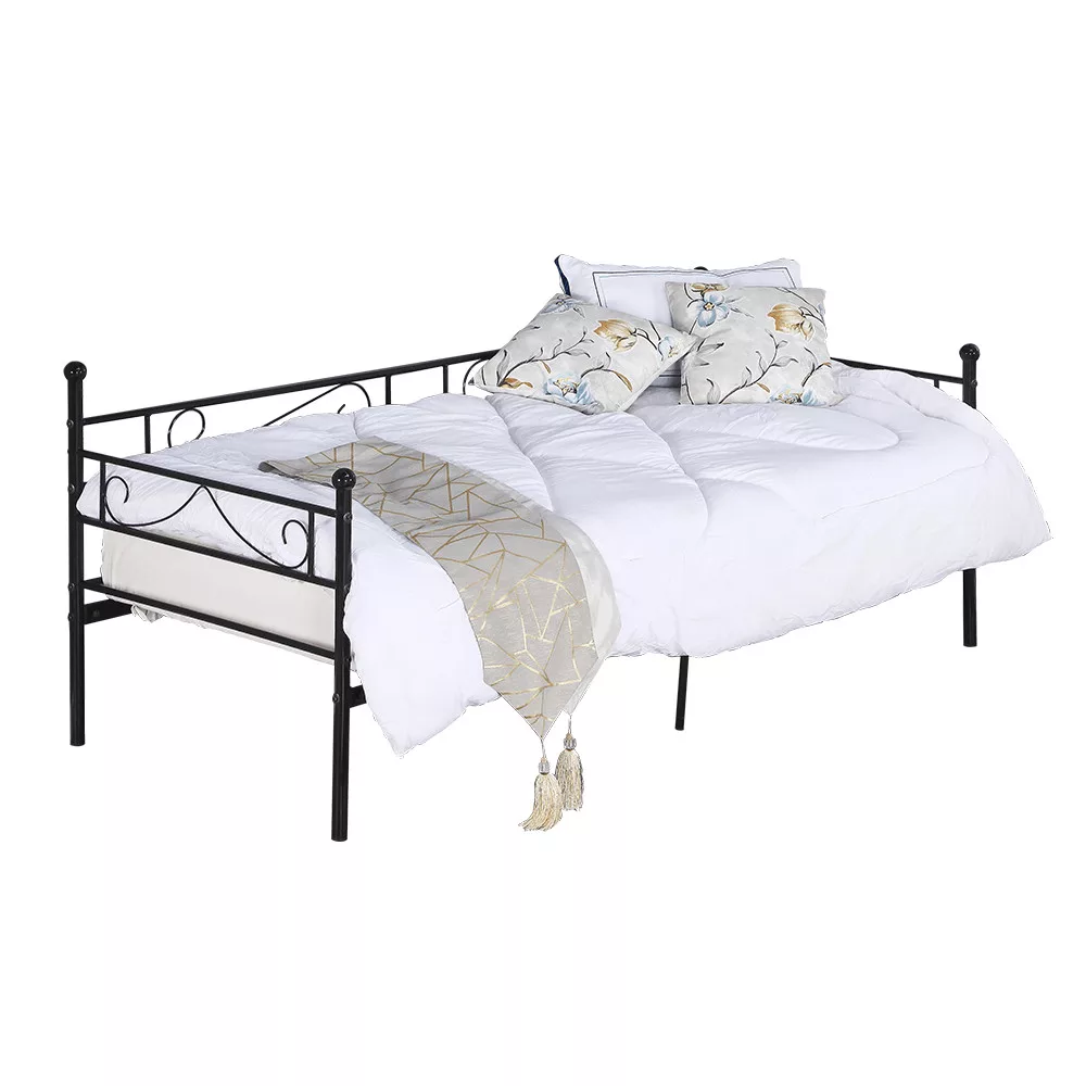 Fém kanapé - egyszemélyes ágy, fekete, 90x200, ROZALI