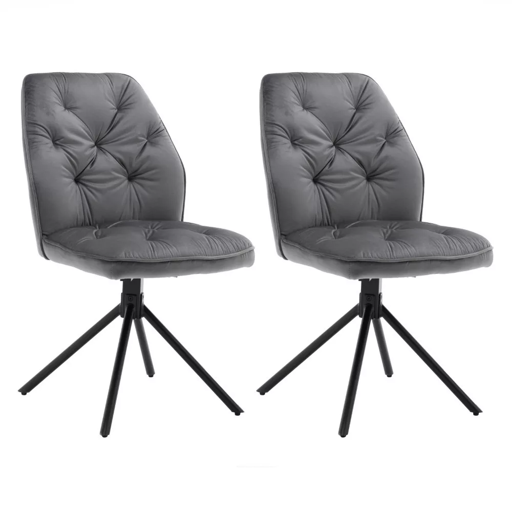 Forgószék, puha, kiváló minőségű szövettel kárpitozva. Az ülőfelület és a háttámla díszes öltésekkel van steppelve, amelyek feldobják a szék megjelenését. A fekete színű váz porszórt fémből készült, és beépített forgótányérral rendelkezik, amely lehetővé teszi a szék ülőfelületének 180°-os elforgatását. A szék maximális teherbírása 120 kg. Tekintse meg a szék karfával felszerelt változatát is.