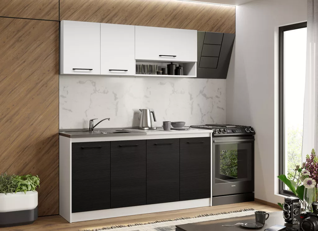 A Luna konyhablokk alsó, felső, és magas elemei tágas tárolóhelyet biztosít a beépíthető készülékek, és a konyhai eszközök számára. Az elemek 16 mm-es préselt forgácslapból készülnek. A fehér és a ferrara kombinációja eleganciát és kifinomultságot közvetít.