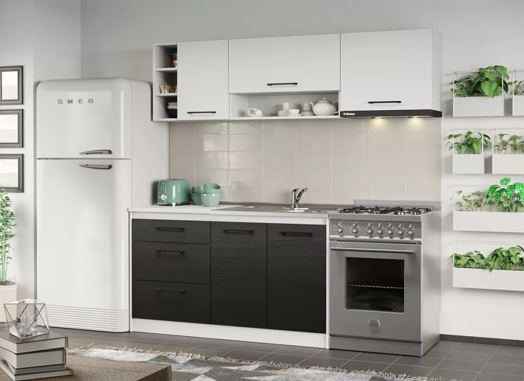 A Luna konyhablokk alsó, felső, és magas elemei tágas tárolóhelyet biztosít a beépíthető készülékek, és a konyhai eszközök számára. Az elemek 16 mm-es préselt forgácslapból készülnek. A fehér és a ferrara kombinációja eleganciát és kifinomultságot közvetít.