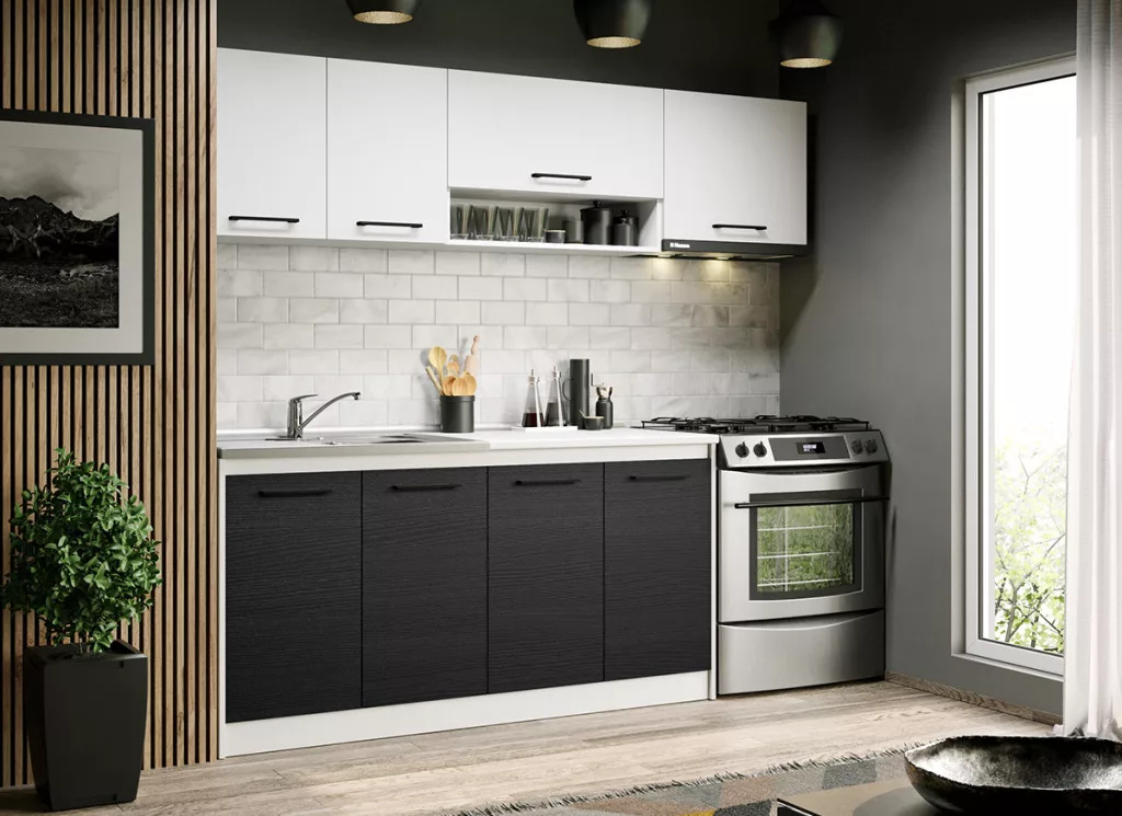 A Luna konyhablokk alsó, felső, és magas elemei tágas tárolóhelyet biztosít a beépíthető készülékek, és a konyhai eszközök számára. Az elemek 16 mm-es préselt forgácslapból készülnek. A fehér és a ferrara kombinációja eleganciát és kifinomultságot közvetít.