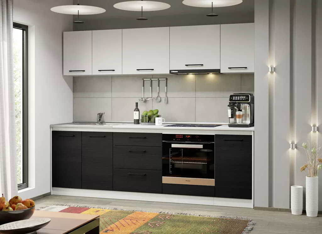 A Luna konyhablokk alsó, felső, és magas elemei tágas tárolóhelyet biztosít a beépíthető készülékek, és a konyhai eszközök számára. Az elemek 16 mm-es préselt forgácslapból készülnek. A fehér és a ferrara kombinációja eleganciát és kifinomultságot közvetít.