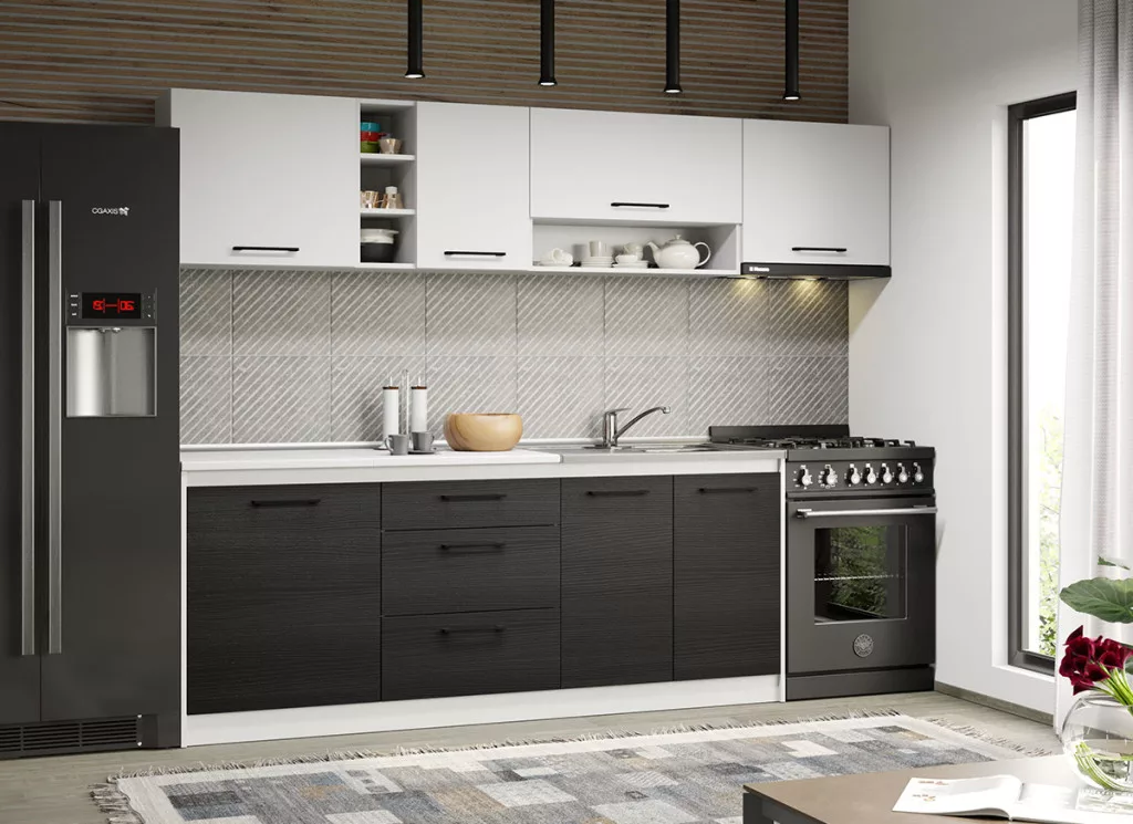 A Luna konyhablokk alsó, felső, és magas elemei tágas tárolóhelyet biztosít a beépíthető készülékek, és a konyhai eszközök számára. Az elemek 16 mm-es préselt forgácslapból készülnek. A fehér és a ferrara kombinációja eleganciát és kifinomultságot közvetít.