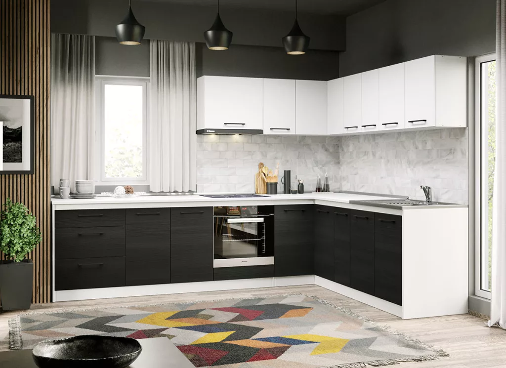 A Luna konyhablokk alsó, felső, és magas elemei tágas tárolóhelyet biztosít a beépíthető készülékek, és a konyhai eszközök számára. Az elemek 16 mm-es préselt forgácslapból készülnek. A fehér és a ferrara kombinációja eleganciát és kifinomultságot közvetít.