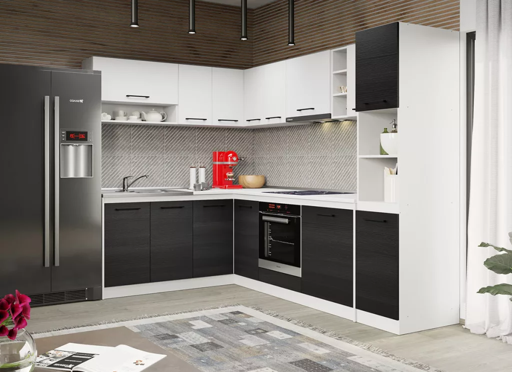 A Luna konyhablokk alsó, felső, és magas elemei tágas tárolóhelyet biztosít a beépíthető készülékek, és a konyhai eszközök számára. Az elemek 16 mm-es préselt forgácslapból készülnek. A fehér és a ferrara kombinációja eleganciát és kifinomultságot közvetít.