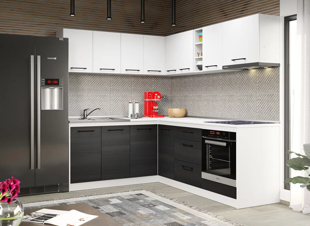 A Luna konyhablokk alsó, felső, és magas elemei tágas tárolóhelyet biztosít a beépíthető készülékek, és a konyhai eszközök számára. Az elemek 16 mm-es préselt forgácslapból készülnek. A fehér és a ferrara kombinációja eleganciát és kifinomultságot közvetít.