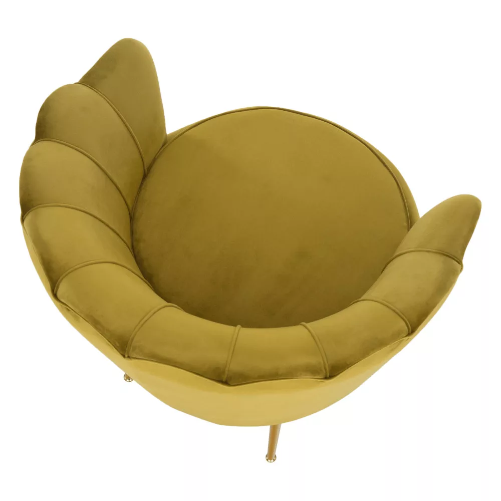 Fotel Art-deco stílusban, mustár színű Velvet anyag/gold chróm-arany, NOBLIN