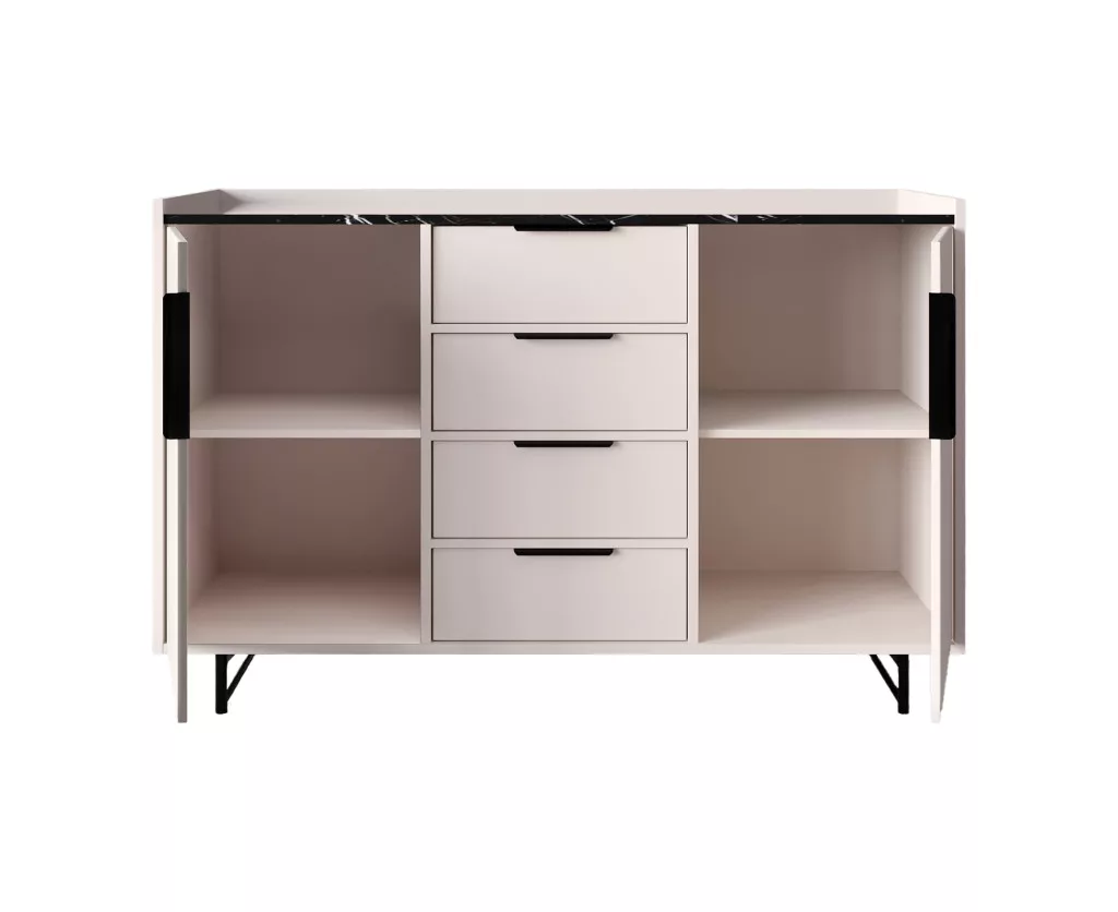 Modern, letisztult vonaltervezésű nappalisorunk elegáns és praktikus megoldást kínál bármely otthonba. A függőleges bordázott ajtók finom textúrát adnak a bútornak, miközben megőrzik a minimalisták által kedvelt egyszerűséget. A széles Tv szekrény tágas tárolóhelyet bizotsít. A karcsú, fekete lábak stabil tartást adnak, ugyanakkor modern megjelenést kölcsönöznek.