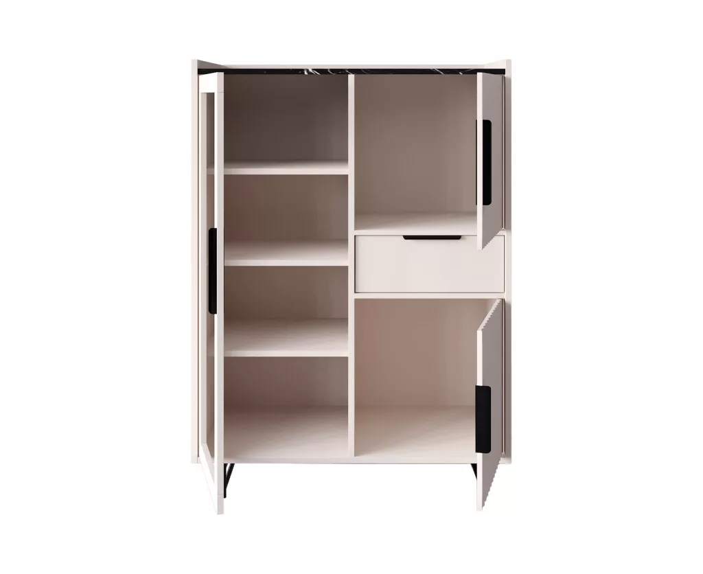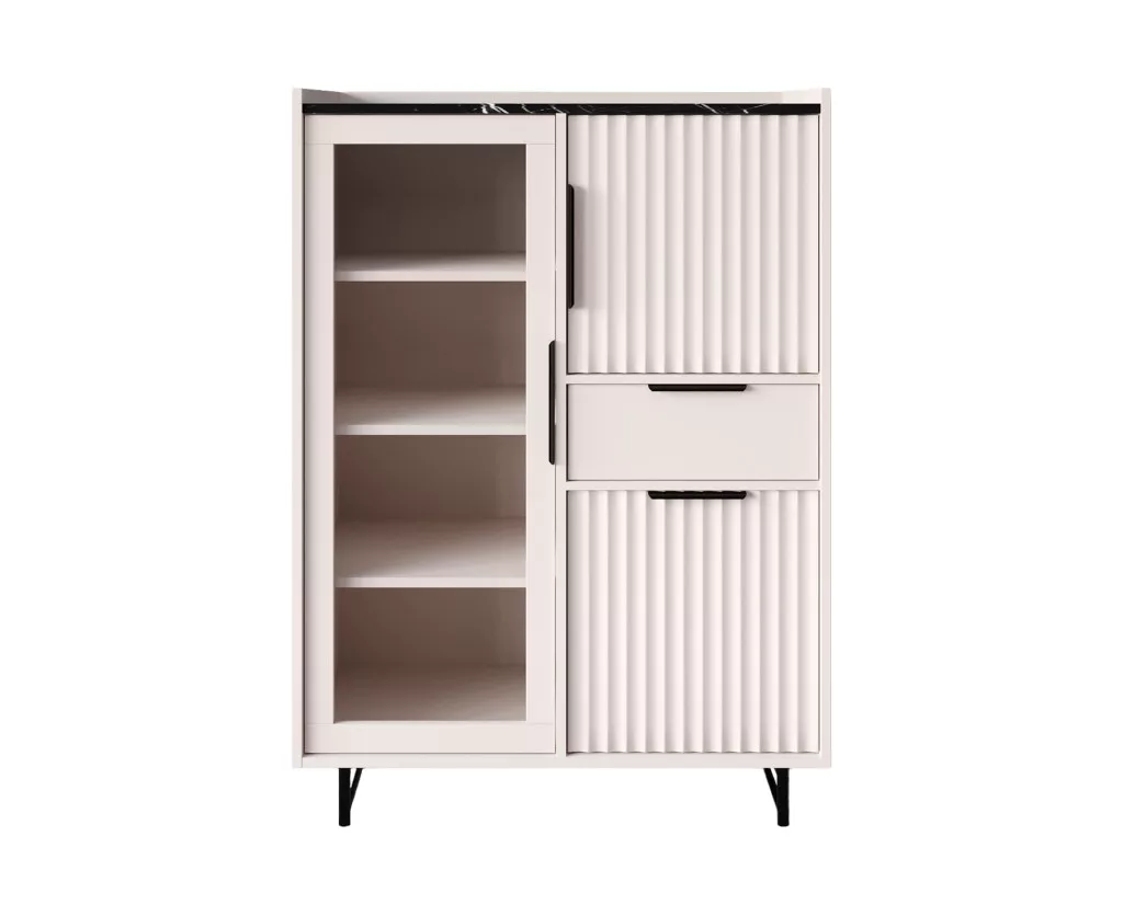 Modern, letisztult vonaltervezésű nappalisorunk elegáns és praktikus megoldást kínál bármely otthonba. A függőleges bordázott ajtók finom textúrát adnak a bútornak, miközben megőrzik a minimalisták által kedvelt egyszerűséget. A széles Tv szekrény tágas tárolóhelyet bizotsít. A karcsú, fekete lábak stabil tartást adnak, ugyanakkor modern megjelenést kölcsönöznek.