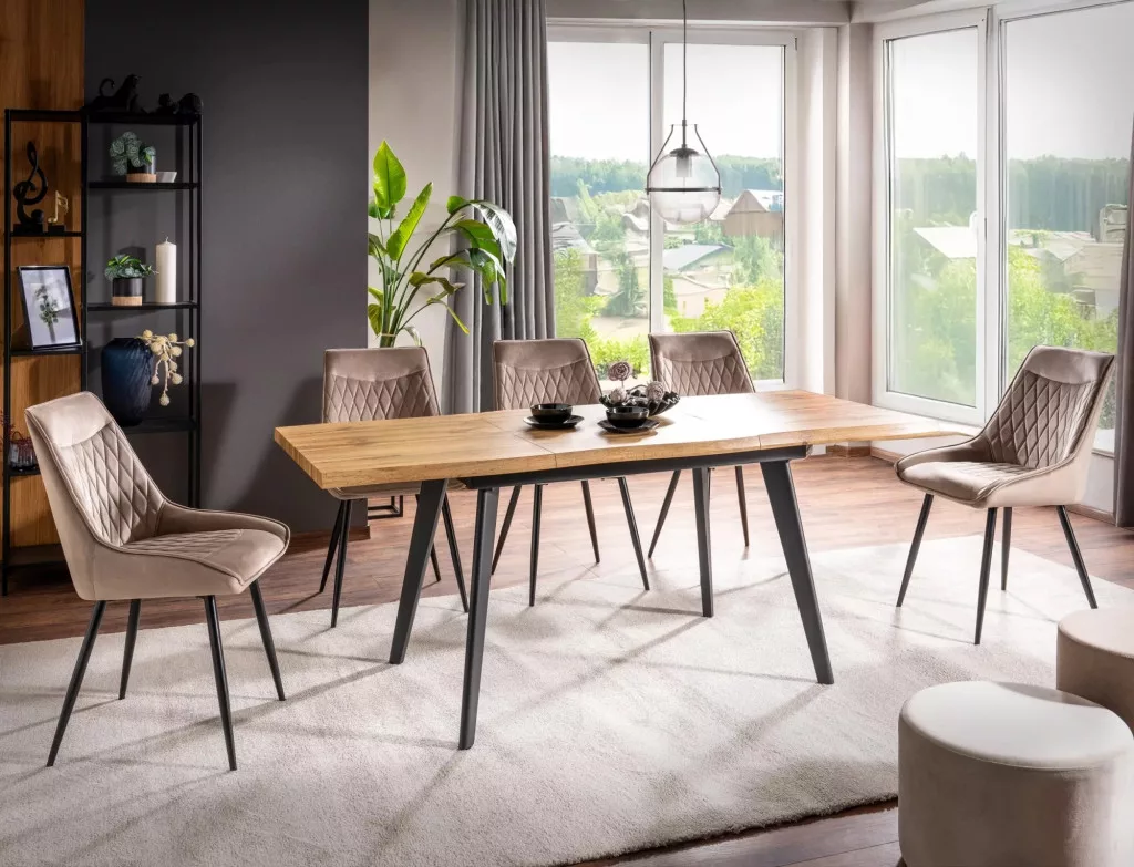 Az Fresno étkezőasztal, 150X90, fekete, kézműves tölgy (150×90 cm) praktikus választás a konyhába és étkezőbe. bővíthető kialakítású, MDF felsőrésszel és fém vázzal, fekete / kézműves tölgy színvilággal, így stílusos és időtálló megoldást nyújt a mindennapi használatra.