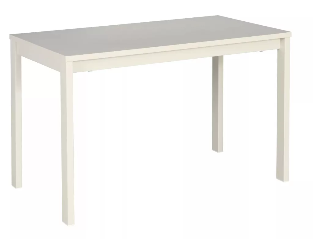 Dohányzóasztal, teteje: laminált bútorlap, váz: fém, szín: törtfehér.