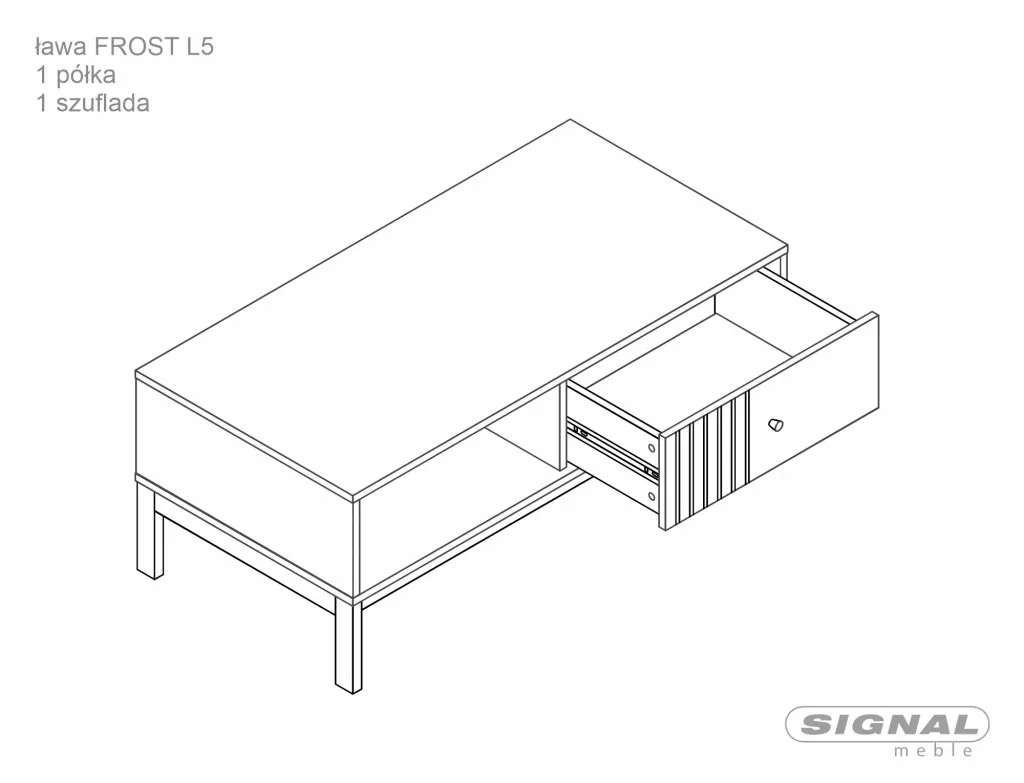 Fedezd fel a modern dizájnt a Ława Frost L5 bútorral, amely tökéletes kiegészítője lehet otthonodnak, legyen szó nappaliról vagy hálószobáról. Az off white és alpesi tölgy színkombináció harmonikus eleganciát kölcsönöz, míg a laminált lap és fém stelaž tartós és stílusos megjelenést biztosít. Tedd még vonzóbbá lakásodat ezzel a praktikus és esztétikus bútorral!