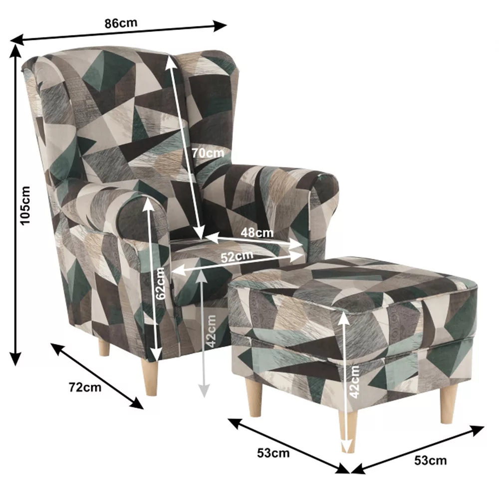Méretek (SzéxMaxMé): Fotel - 86x105x82 cm, Puff - 53x42x53 cm,