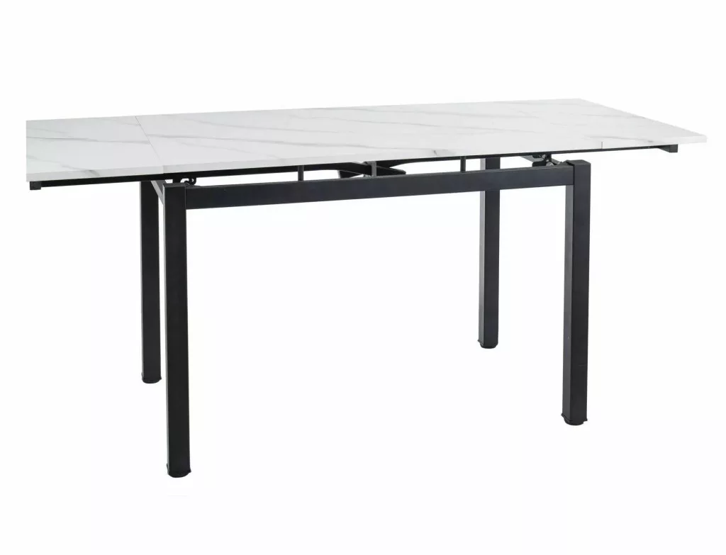 Meghosszabbítható asztal, asztallap: MDF + furnér, váz: fém, szín: fehér márványhatású / matt fekete.