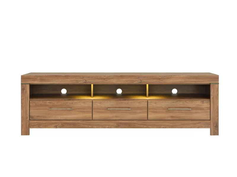 A GERMAN termékcsalád stílusos RTV szekrénye, mely a stirling tölgy markáns színének, és a bútor praktikus kialakításának köszönhetően, bármelyik nappaliban megállja a helyét.