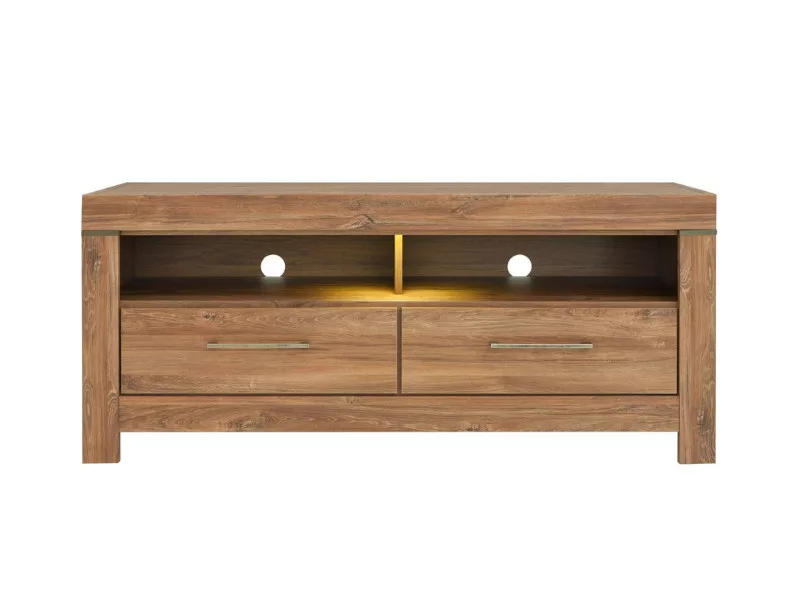 A GERMAN termékcsalád stílusos RTV szekrénye, mely a stirling tölgy markáns színének, és a bútor praktikus kialakításának köszönhetően, bármelyik nappaliban megállja a helyét.