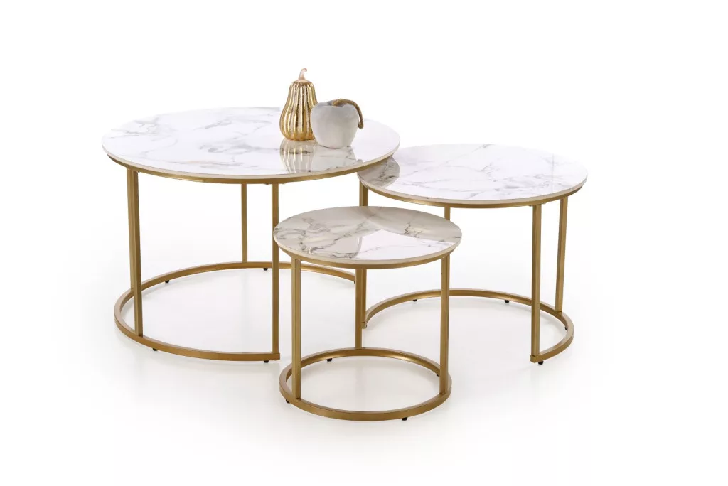 GILDA három darabos dohányzóasztal szett, szín: fehér márvány/arany