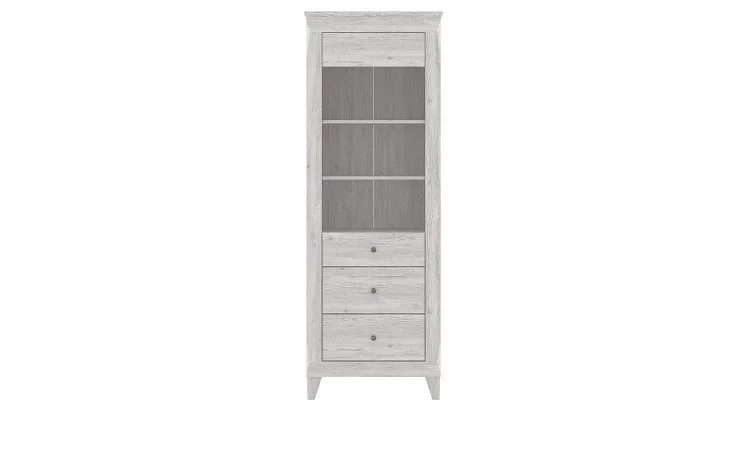 Az GRAF termékcsalád stílusos vitrine, mely az alaska tölgy elegáns színének, és a bútor praktikus kialakításának köszönhetően, a lakás bármelyik pontján megállja a helyét.