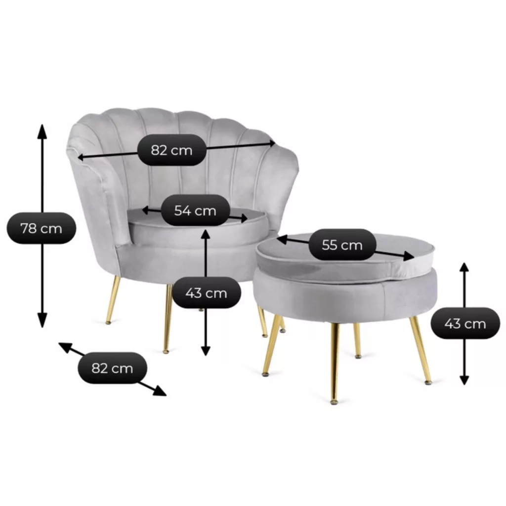 GRAND Szürke Pihenőfotel Lábtartóval. Álmodott már egy olyan helyről, ahol minden lelassul? Ahol sietség nélkül, kényelmesen, gyönyörű környezetben pihenhet? A Grand szürke pihenőfotelt pontosan erre a célra alkották meg. Harmonikus formája, puha kárpitozása és a hozzá illő lábtartója egy olyan triót alkot, amely többet ad Önnek, mint egy bútordarabot – minden nap egy pillanatot ad Önnek, csak Önnek. A Grand termék előnyei közé tartozik az azonnal érezhető kényelem – és a felidézhető dizájn: Tágas, kényelmes ülőfelület: Ruganyos és megfelelően formázott, lehetővé teszi a valódi ellazulást és a megkönnyebbülés érzését. Bársony kárpitozás: Kellemes tapintású, könnyen kezelhető és kopásálló.
