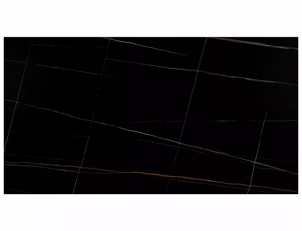 Meghosszabbítható asztal, asztallap: kerámia, váz: fém + MDF + furnér, szín: matt fekete / kőris.