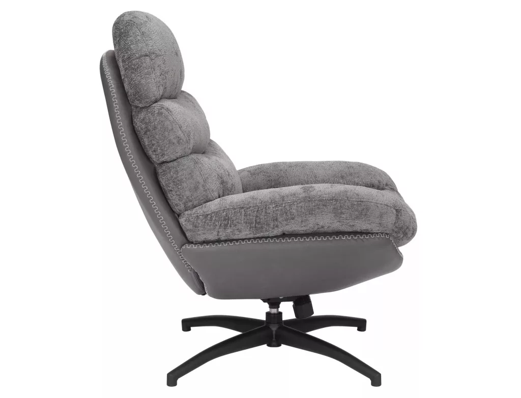 Giselle fotel modern dizájnjával tökéletes választás otthonába, legyen az nappali vagy hálószoba. Szürke szövet és szintetikus bőr kombinációja különböző stílusos, hanem rendkívül kényelmes is. 360 fokban forgatható ülőfelületével a fotel ideális a pihenéshez és a lazításhoz, így minden modern bútor kollekcióban helyet kap.