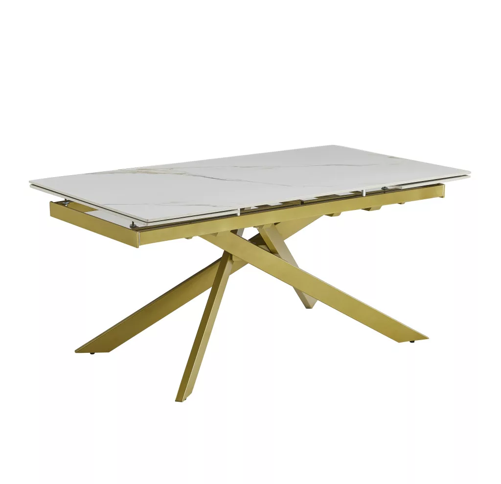 Egy kihúzható étkezőasztal, amely ötvözi a modern alkalmazkodóképességet és a régi vágású fényűzést, így minden modern étkező kiemelkedő dísze. A téglalap alakú asztallap luxus, magasfényű felületkezeléssel rendelkezik, Kass Gold és White színkombinációban.
