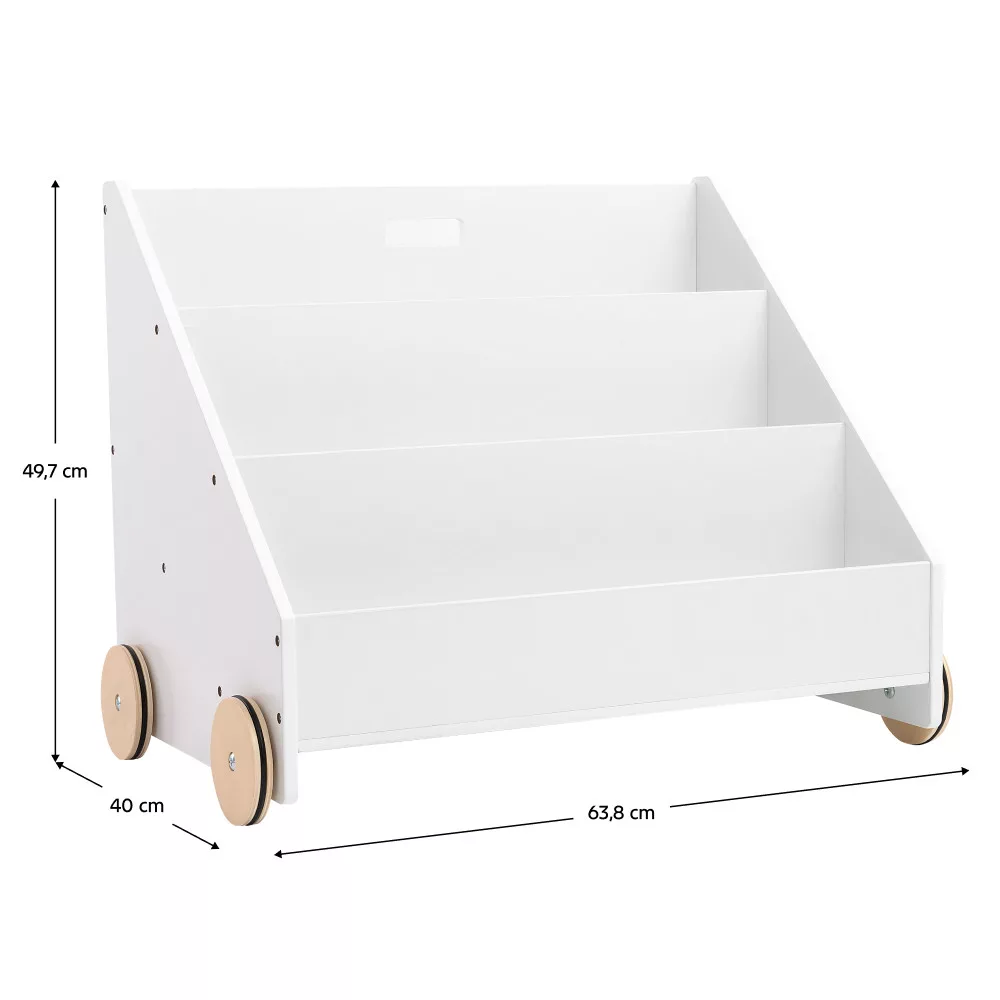 Gyerek könyvespolc kerekekkel, fehér, BERUS