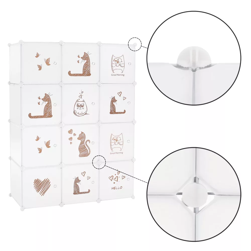 Gyerek moduláris szekrény, fehér/barna gyerek minta, KITARO