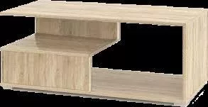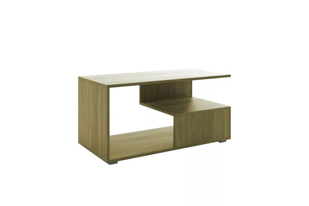 Letisztult, vékony bútorlapos dohányzóasztal, újságtartó polccal.