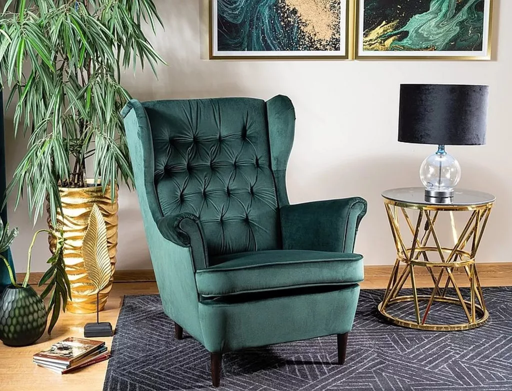 Fotel, bársony szövet, szín: a Bluvel 78 minta szerint, fa, szín: wenge.