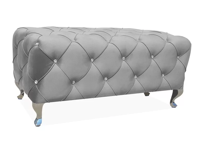 Puff / pad, bársony anyag: szürke BLUVEL 14 / lábak: fém, szín: ezüst. Kristályok (gombok) száma: 54 db, lábmagasság: 14 cm