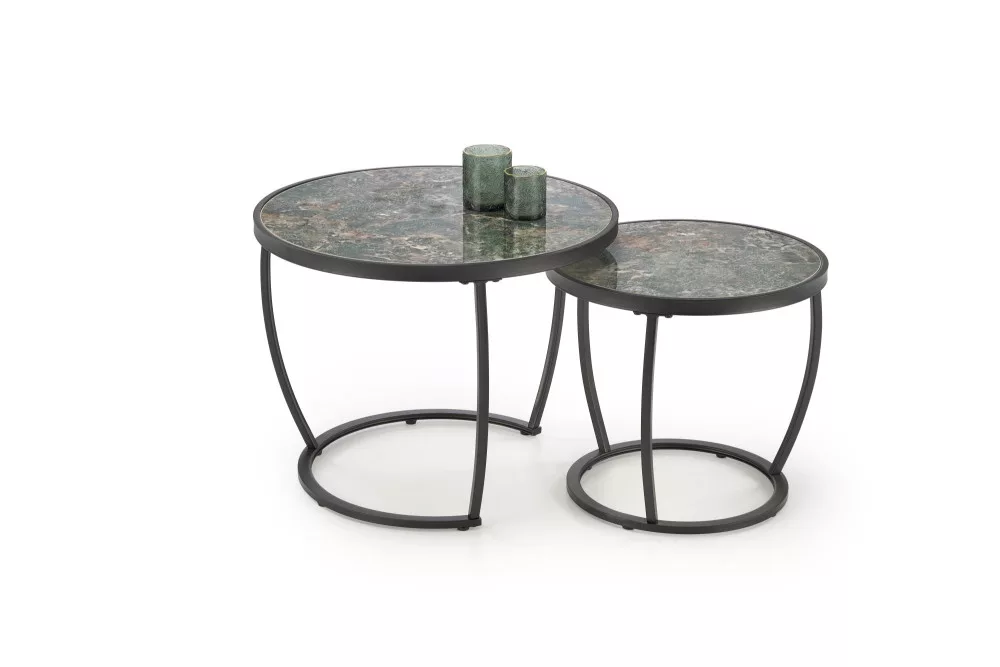 INES két dohányzóasztal készlet, zöld márvány / fekete