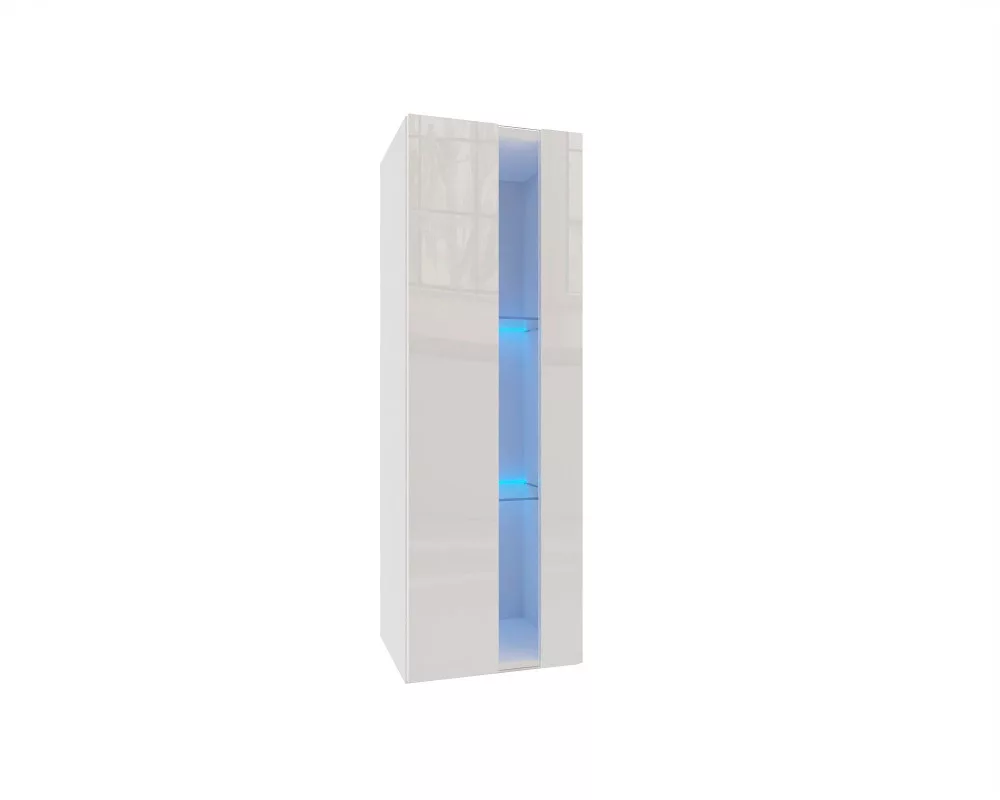IZUMI 1 magasfényű fehér polcos, vitrines függesztett fali szekrény, 105 BL