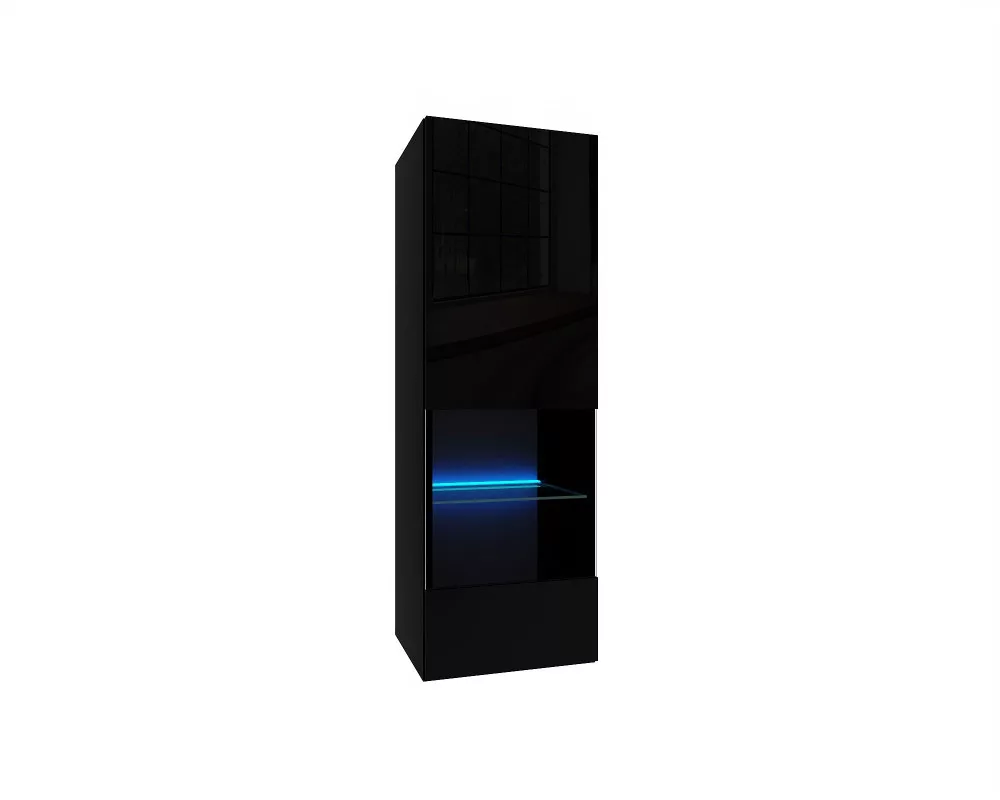 IZUMI 2 magasfényű fekete/fekete polcos, vitrines függesztett fali szekrény, 105 BL