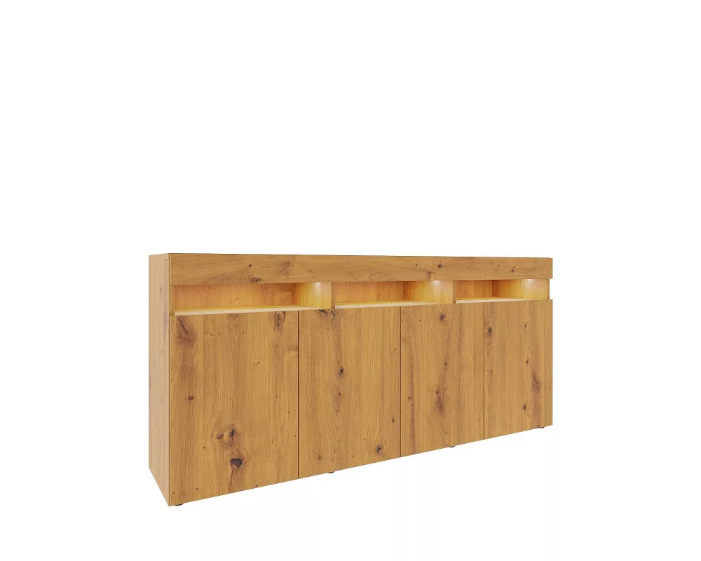 Elegáns, modern, egyszerű, letisztult komód. A termékcsalád többi elemével kombinálva gyönyörű, egyedi nappali sort lehet összeállítani.